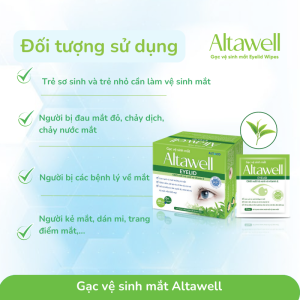 - Sản phẩm Gạc vệ sinh mắt Altawell Eyelid tuyệt đối an toàn, lành tính, 100% được tiệt trùng kép 2 lần bằng hơi nước và tia GAMMA, sử dụng được cho cả người lớn và trẻ nhỏ, đặc biệt là trẻ sơ sinh có thể dùng để vệ sinh mắt hàng ngày…